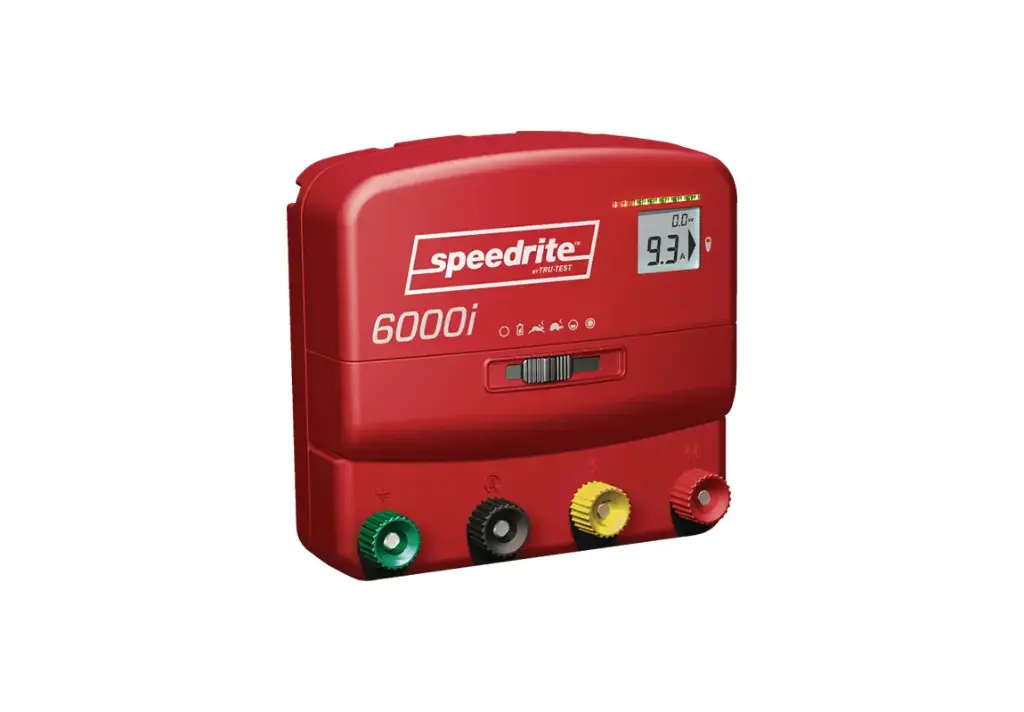 The Speedrite 6000i Unigizer is a versatile electric fence energizer offering 6 joules (J) of maximum output energy, suitable for powering up to 60 miles (240 acres) of fence line. Key features include: